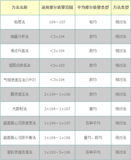 高聚物摩爾質(zhì)量不僅反映了高聚物分子的大小,而且直接關(guān)系到它的物理性能,是個(gè)重要的基本參數(shù)。與一般的無機(jī)物或低分子的有機(jī)物不同,高聚物多是摩爾質(zhì)量大小不同的大分子混合物,所以通常所測(cè)高聚物摩爾質(zhì)量是一個(gè)統(tǒng)計(jì)平均值。